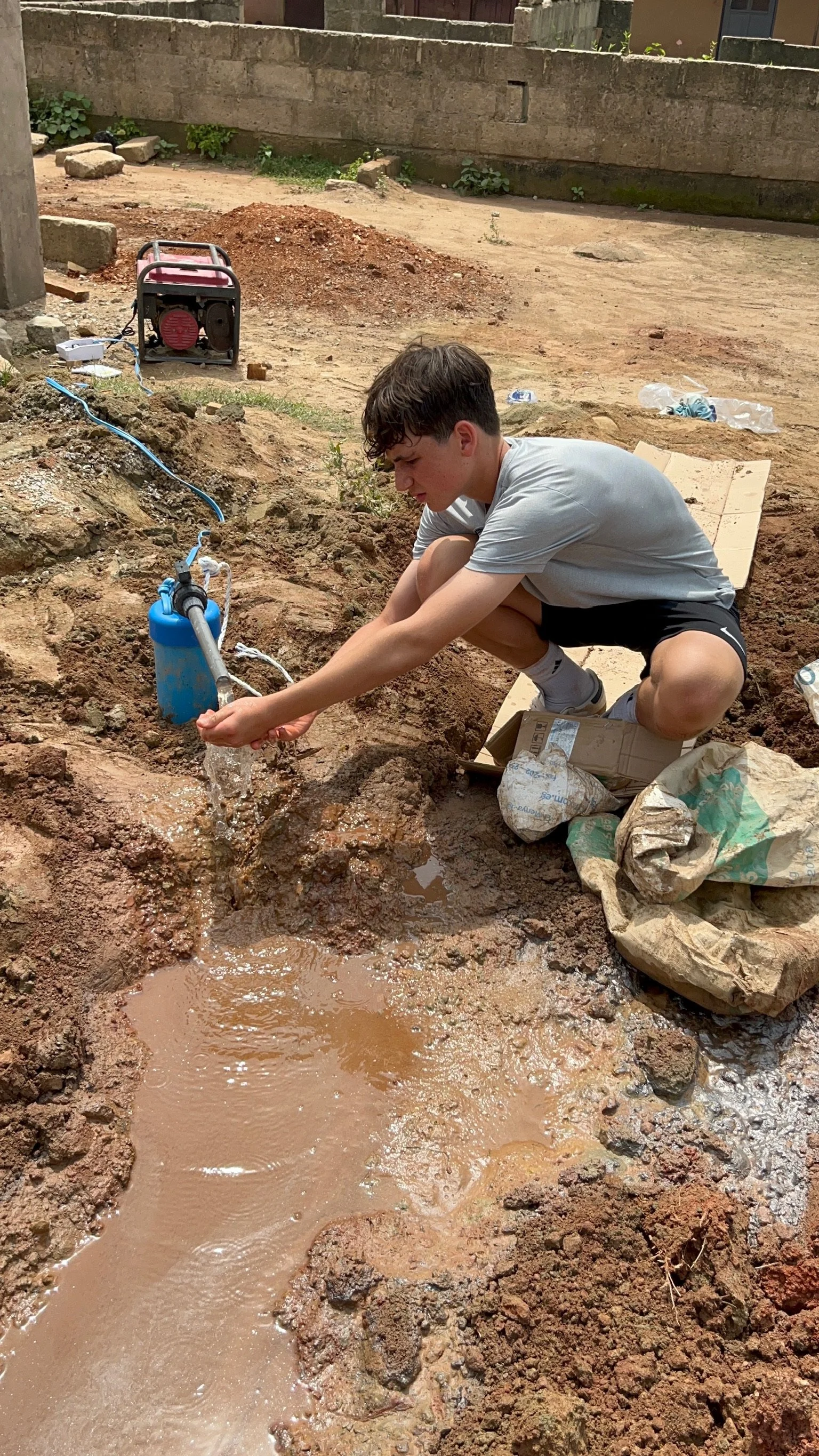 In our next two locations, due to a lack of reliable electricity, we have opted to put in manual, pump bore holes, where users (as seen in the images) pump water out from the ground. We acknowledge that this method takes more effort on the behalf of the user, but unfortunately due to political and infrastructure struggles in Ghana, electricity is not reliable, and this is the next best way to provide clean water.